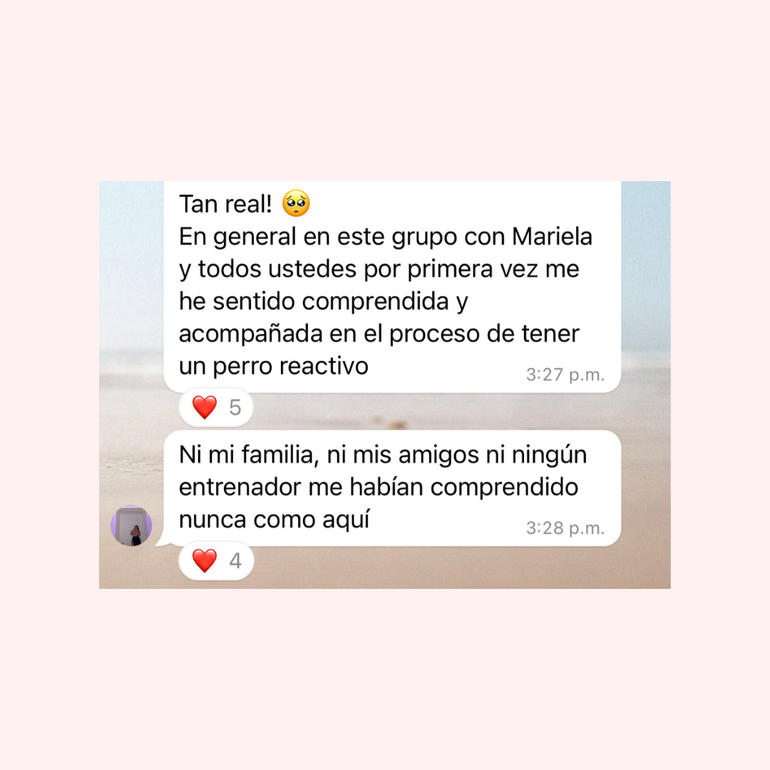 sino que entiendes por qué tu perro reacciona y cómo ayudarlo de verdad — con acompañamiento y comunidad.